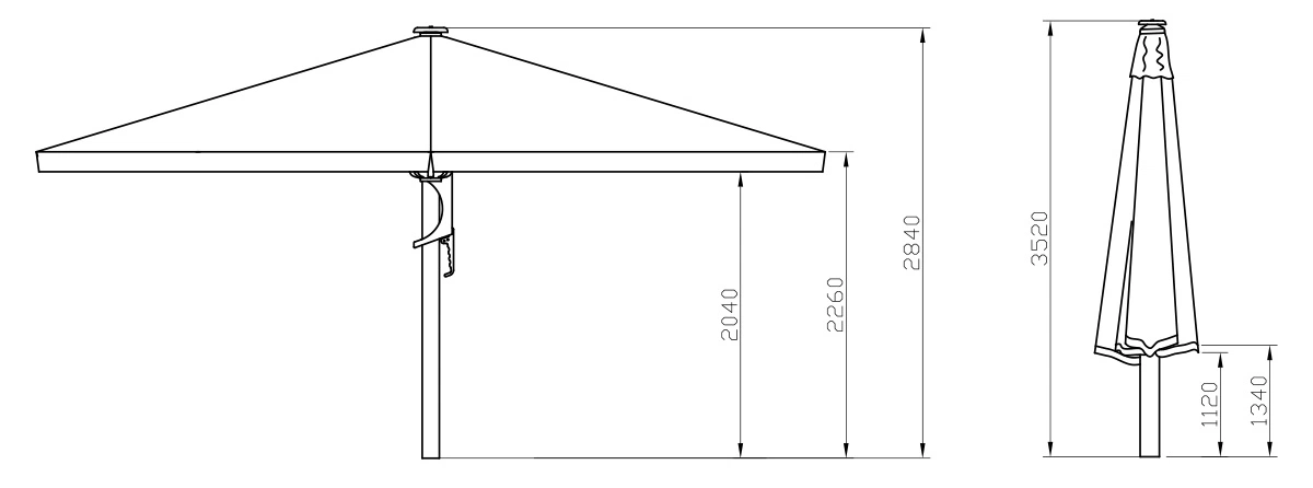 Hos Zederkof säljer vi både fyrkantiga och runda parasoller. Formen beror främst på personlig smak, men de olika formerna har också sina fördelar – särskilt de fyrkantiga. En fyrkantig jätteparasol fungerar särskilt bra om du vill täcka ett stort område, eftersom flera av samma modell kan placeras intill varandra. Du kan till och med montera hängrännor mellan parasollerna för att leda bort regnvatten. Runda parasoller väljs ofta av estetiska skäl, men de kan vara lättare att placera på mindre ytor. Det handlar helt om den stämning och det utseende du vill skapa i ditt utomhusutrymme. En fyrkantig jätteparasol ger ett mer modernt och stilrent intryck, medan den runda formen kan kännas mer organisk. Det är viktigt att poängtera att runda parasoller inte är ett ”dåligt” val, utan ett estetiskt val – och vårt sortiment av runda parasoller håller samma höga kvalitet som de fyrkantiga.