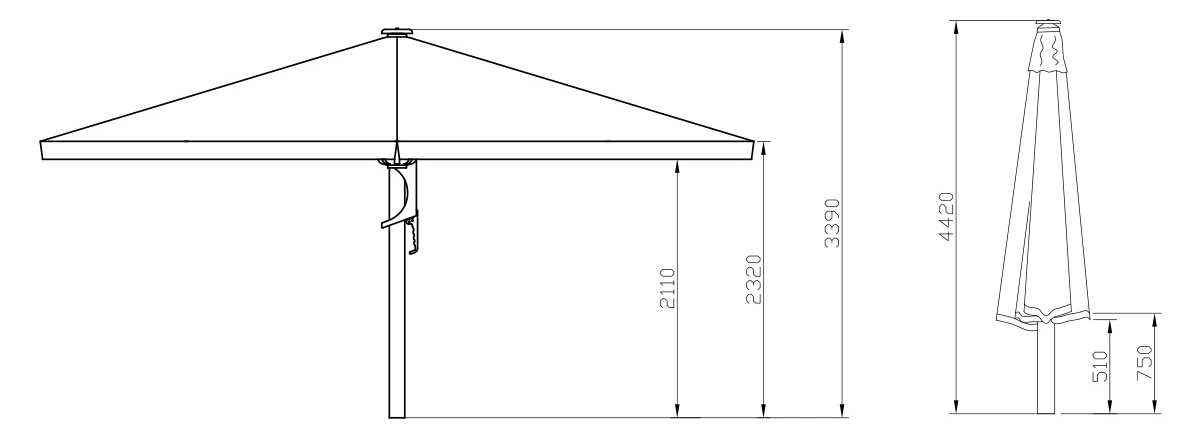 Jätteparasoller från Zederkof är designade för att vara enkla att fälla upp och ner. Parasollerna har en enkel öppningsmekanism.