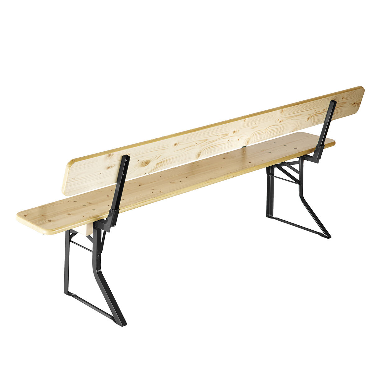 Bänk i massivt gran för professionellt bruk. Med fällbart ryggstöd. Med hopfällbar underrede för enkel transport och förvaring. Obs För begränsad användning utomhus. Bänkarna är inte lämpliga att stå utomhus permanent utan skydd. Eftersom kontinuerlig exponering för väder kan orsaka förändringar i färg och trä.