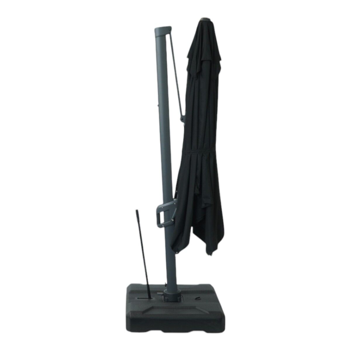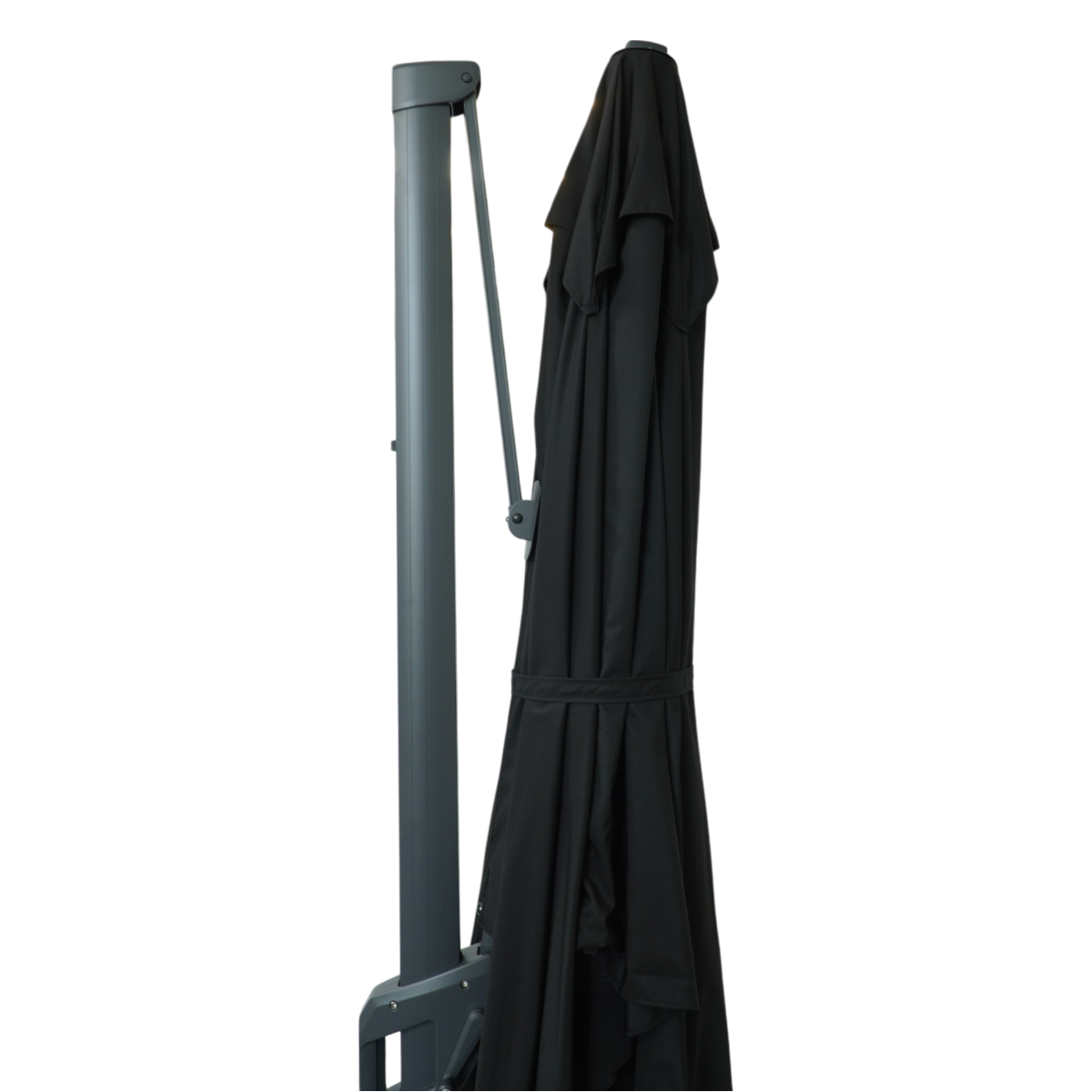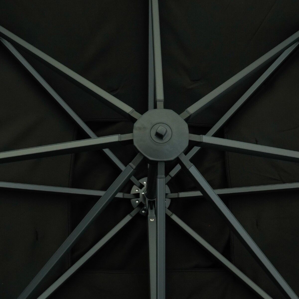 Med en bredde på hele 3×3 meter dækker parasollen nemt større arealer og skaber komfortable skyggeområder til dine gæster. Det fritstående design med sidearm (også kendt som hængearm) sikrer, at hele arealet under parasollen kan udnyttes optimalt – uden generende midterstang.