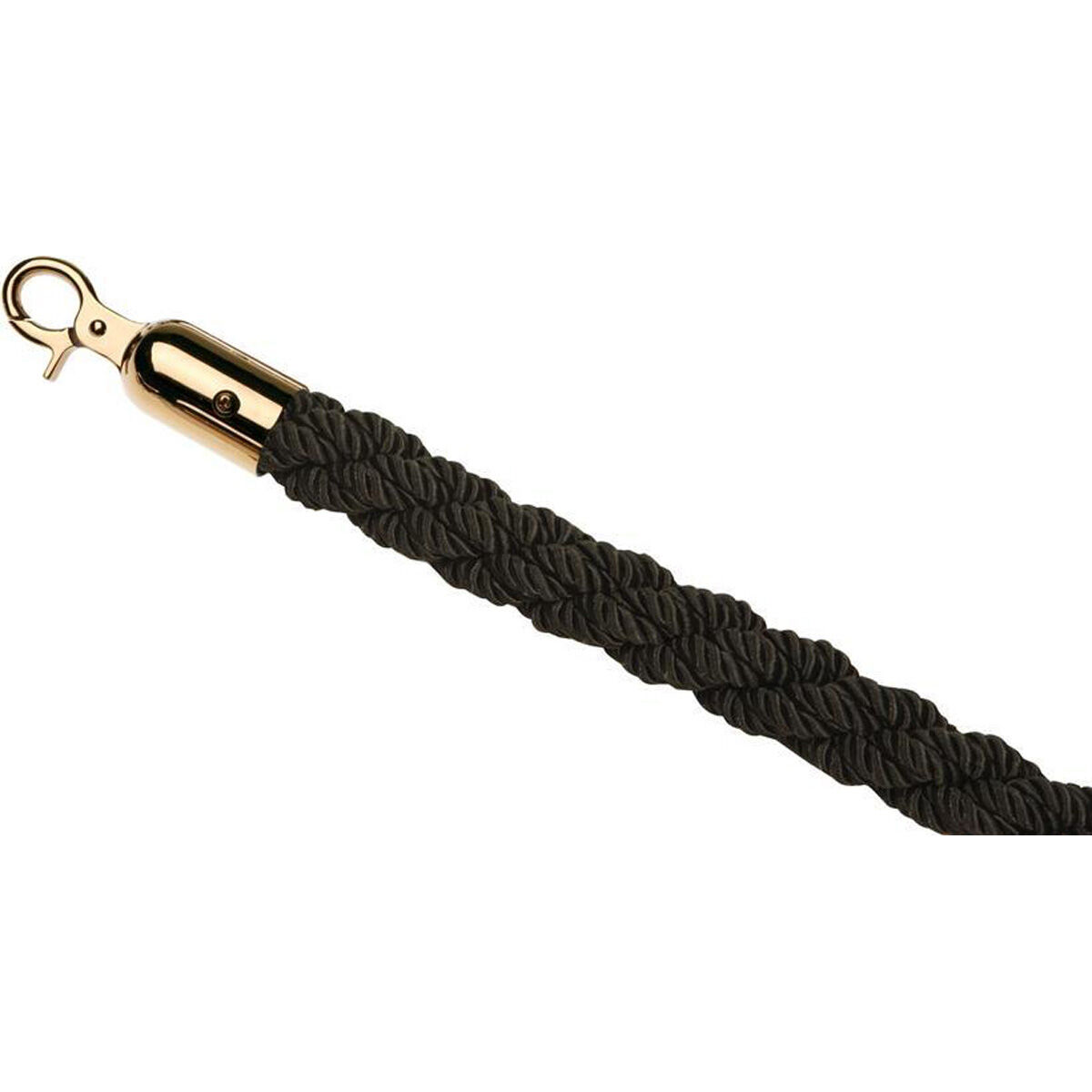 Flätat rep med karbinhakar utförda i krom eller i rostfritt stål belagda med imiterat guld.