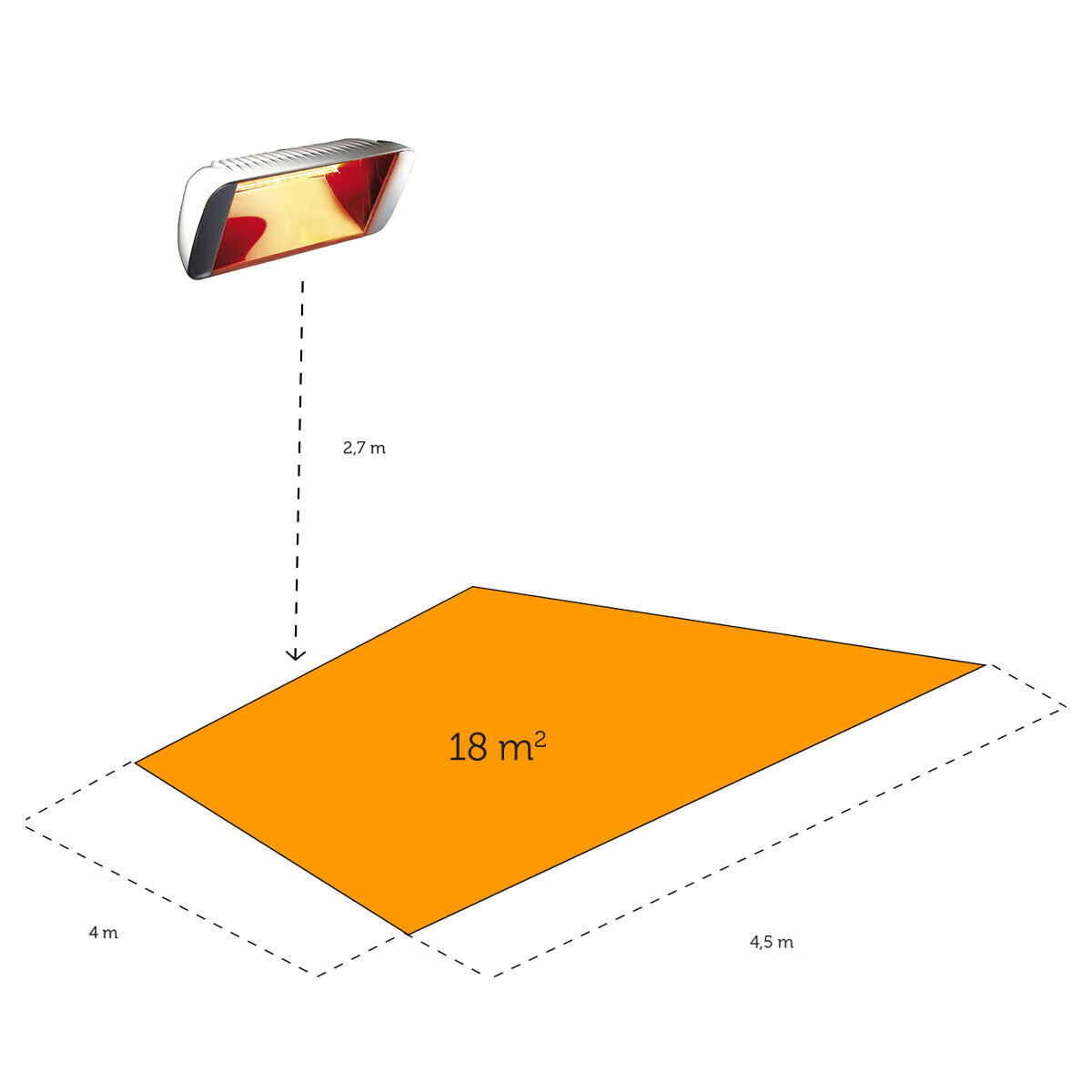 Infraröd värmelampa i professionell kvalitet, som ger behaglig strålningsvärme. För användning både inomhus i t.ex. café/restaurang och utomhus i rökområde eller där omedelbar värme behövs. Lampan har lång livslängd och är billigare i drift än till exempel gas. Standardfästen för montering på vägg medföljer.