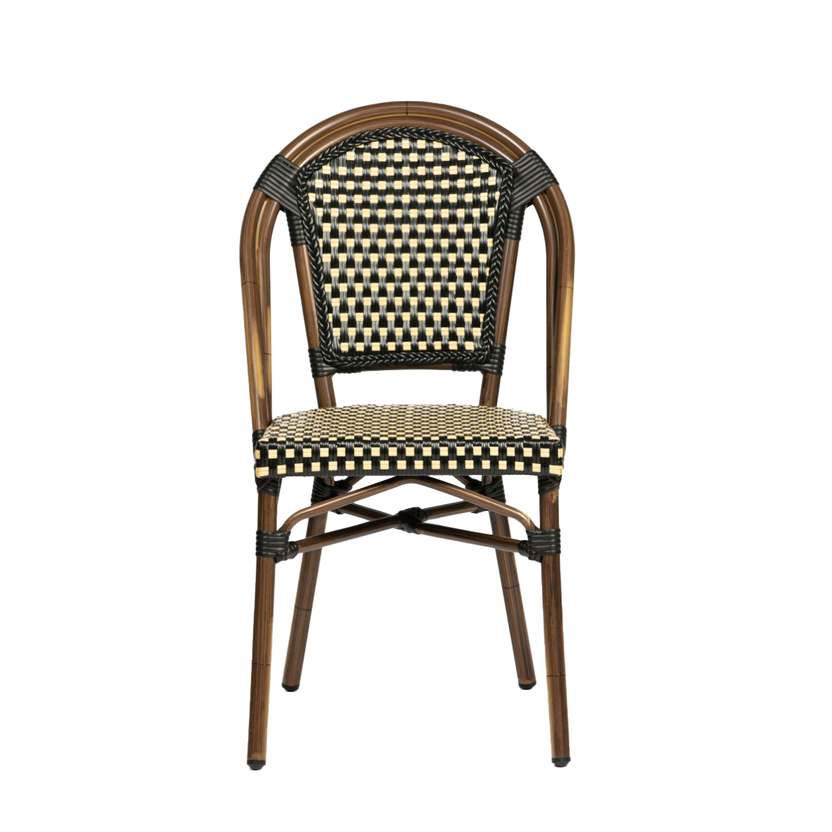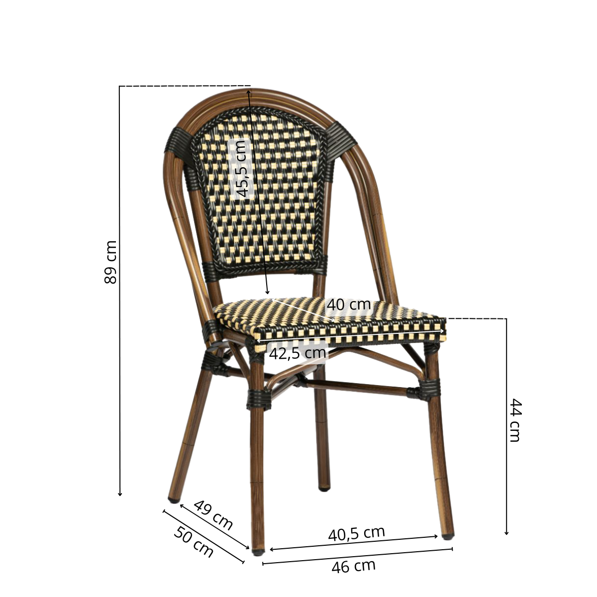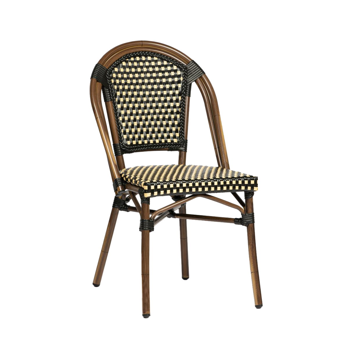 Jason Caféstol i flätat Jason caféstol med flätad polyrotting och aluminiumram. Jason är en elegant och tidlös caféstol, som med sina dämpade och mörka färger kompletterar de flesta interiörer och omgivningar. Stolen har hög sittkomfort och är av professionell kvalitet, vilket gör den till ett självklart val för caféet, restaurangen, uteplatsen etc. Stolen kan även staplas i staplar om 11 stycken.