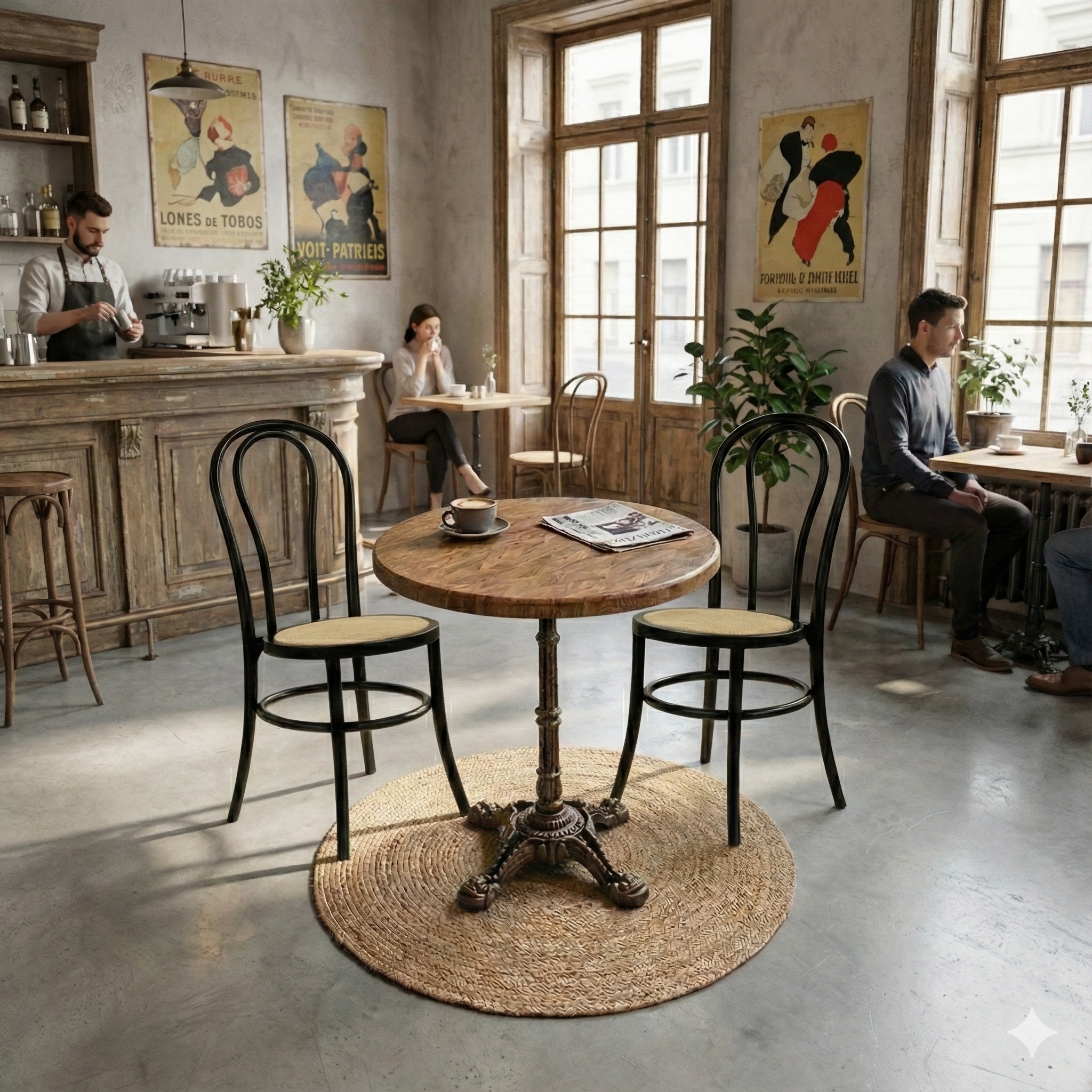 Bordskivan är tillverkad i värmepresslaminat och designad för intensivt kommersiellt bruk. Ytan kombinerar parkettens estetik med laminatens funktionella fördelar: hög slitstyrka, motståndskraft mot fukt och fläckar samt enkel rengöring i daglig drift. Det gör bordskivan idealisk för hektiska serveringsmiljöer med höga krav på både hygien och hållbarhet.