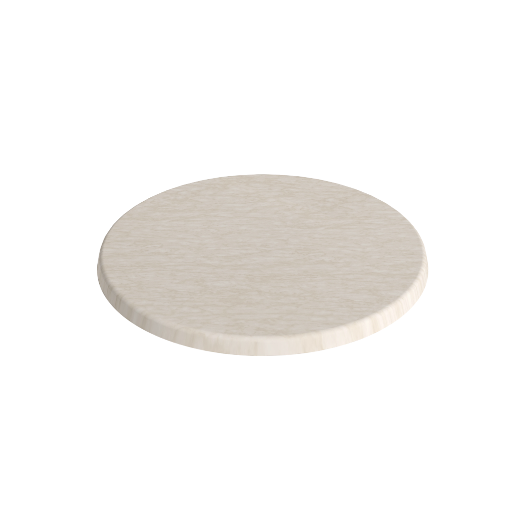 Detta runda bordskiva i marmorlook är ett elegant och driftsäkert val för caféer, restauranger, hotell och evenemangsmiljöer där design och funktionalitet ska gå hand i hand. Det ljusa, sten-inspirerade uttrycket ger en exklusiv och inbjudande yta som höjer helhetsintrycket utan de nackdelar som vanligtvis följer med äkta marmor.