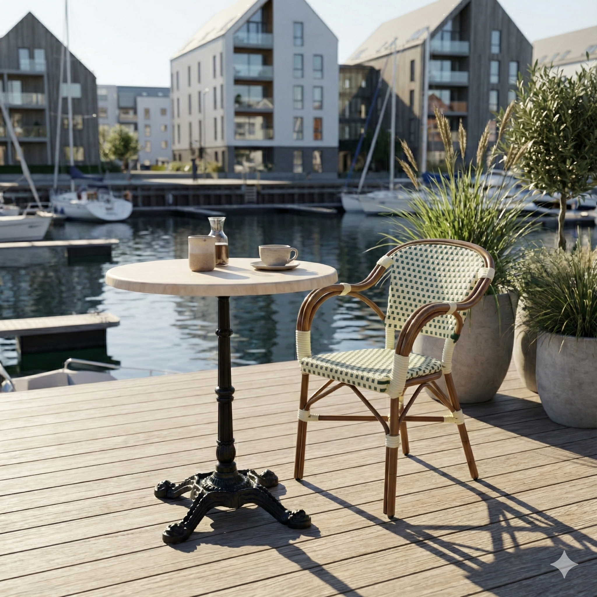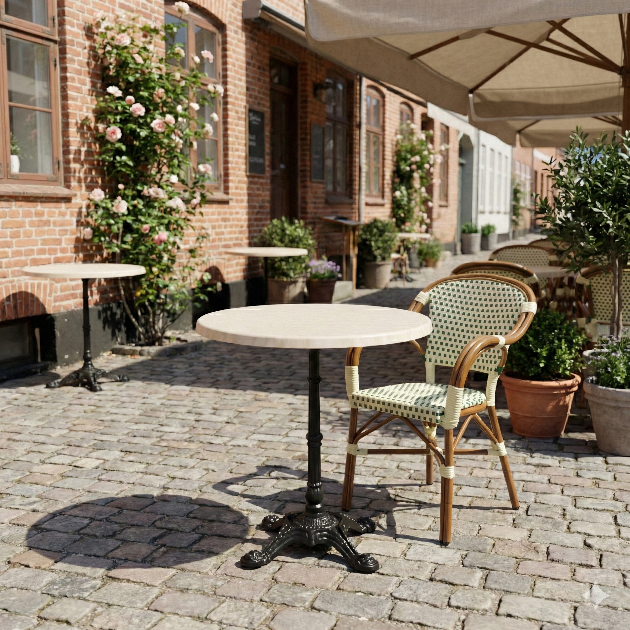 Den runda formen skapar en naturlig och inbjudande borduppställning, som stödjer en bra gästupplevelse och flexibel inredning. En professionell lösning för alla som önskar en stilren marmorlook kombinerad med låg underhåll och hög driftsäkerhet – både inomhus och utomhus.