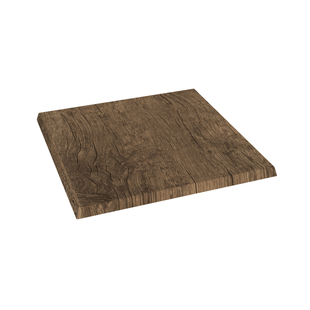 Den fyrkantiga formen gör bordskivan lämplig för effektiv utnyttjande av platsen och flexibla borduppställningar, både inomhus och utomhus. En professionell lösning för alla som önskar ett mörkt träutseende kombinerat med lång livslängd och hög funktionalitet.