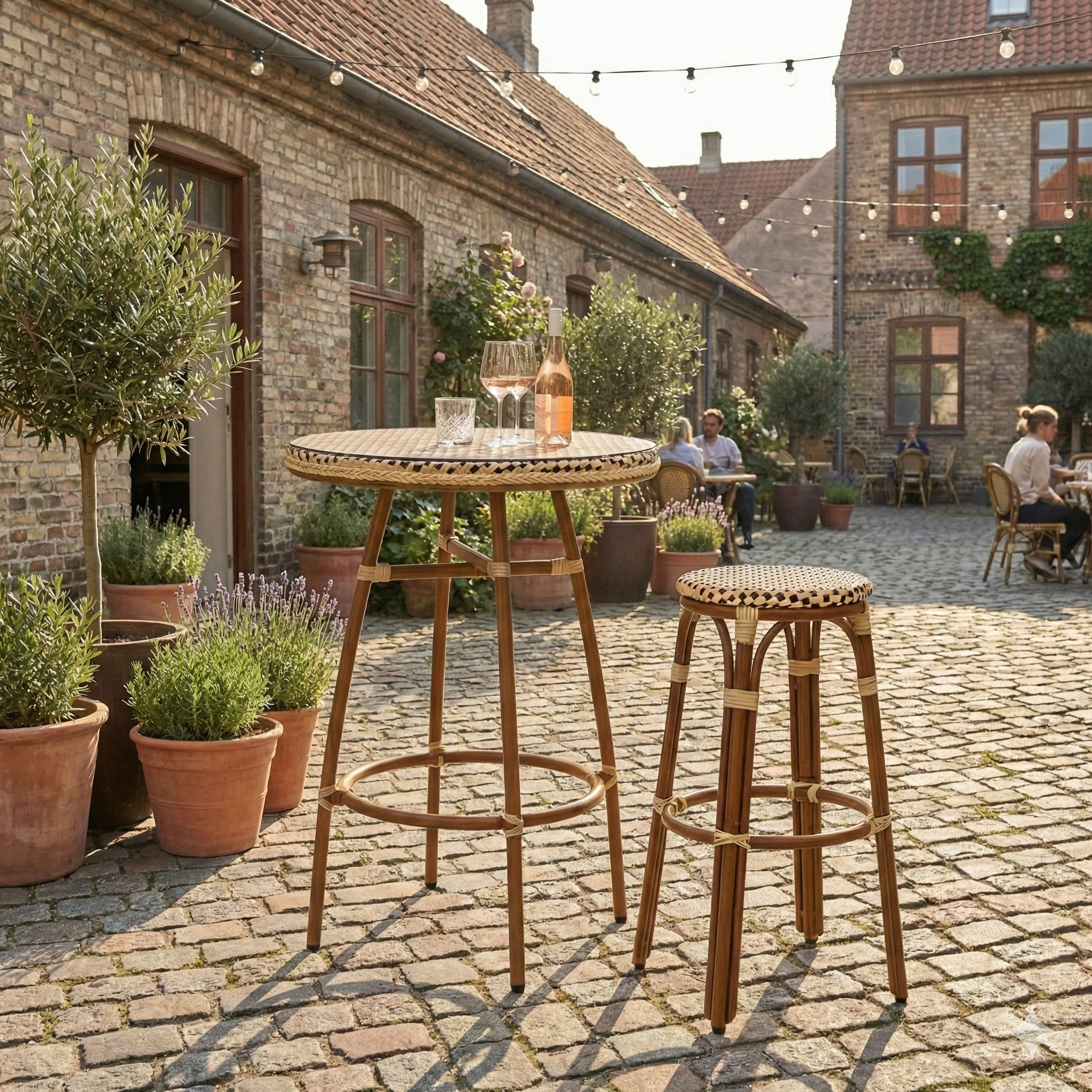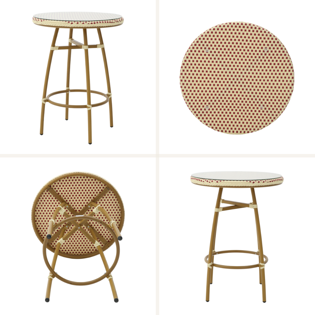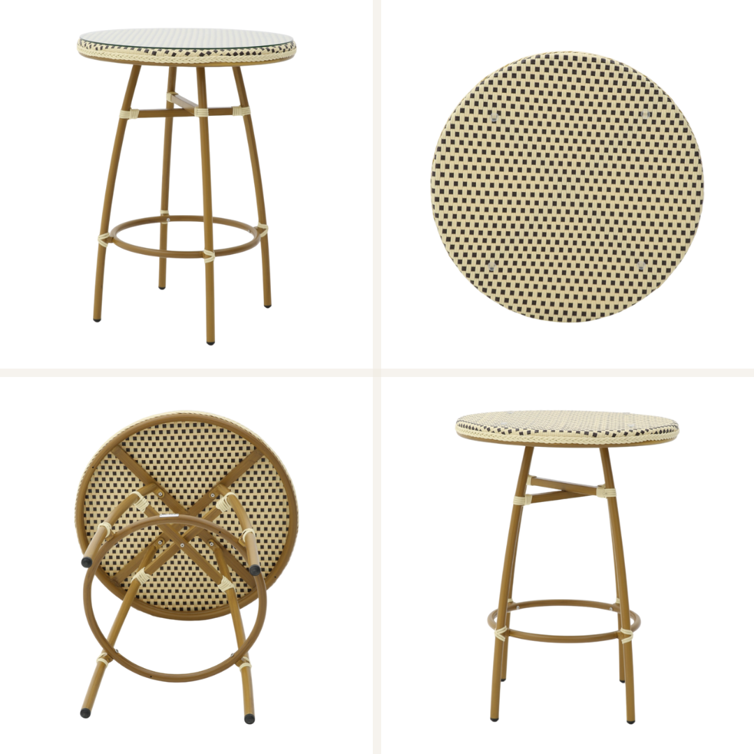 • Eksklusivt fransk design: Ståbordets flettede detaljer og elegante stel giver en sofistikeret atmosfære, der appellerer til gæster i enhver professionel setting.